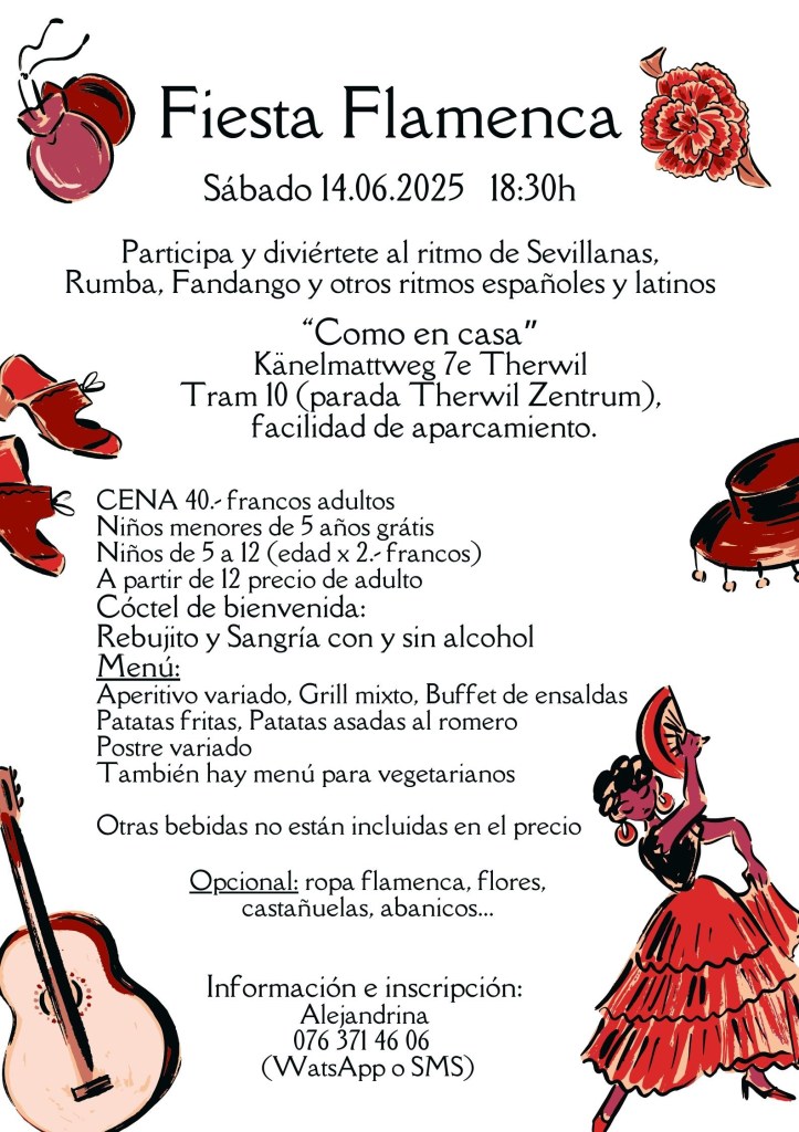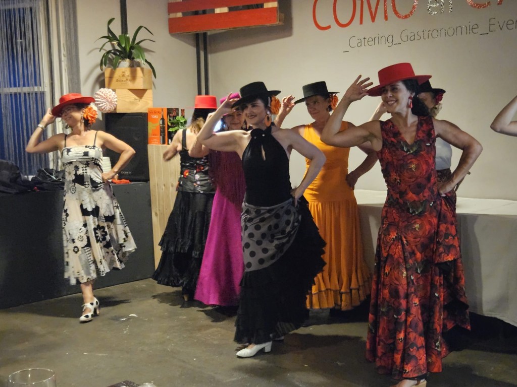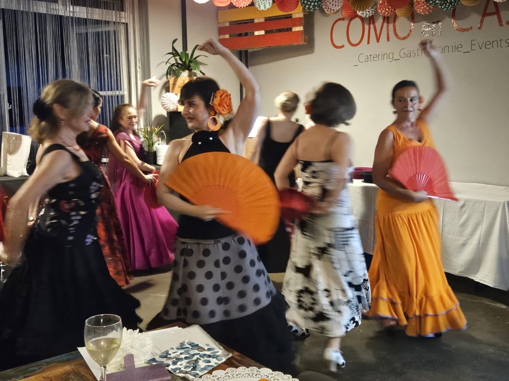 Participa en nuestra fiesta en „Como en casa“, disfruta del baile y buena comida al ritmo de las Sevillanas y otros bailes españoles y latinoamericanos.